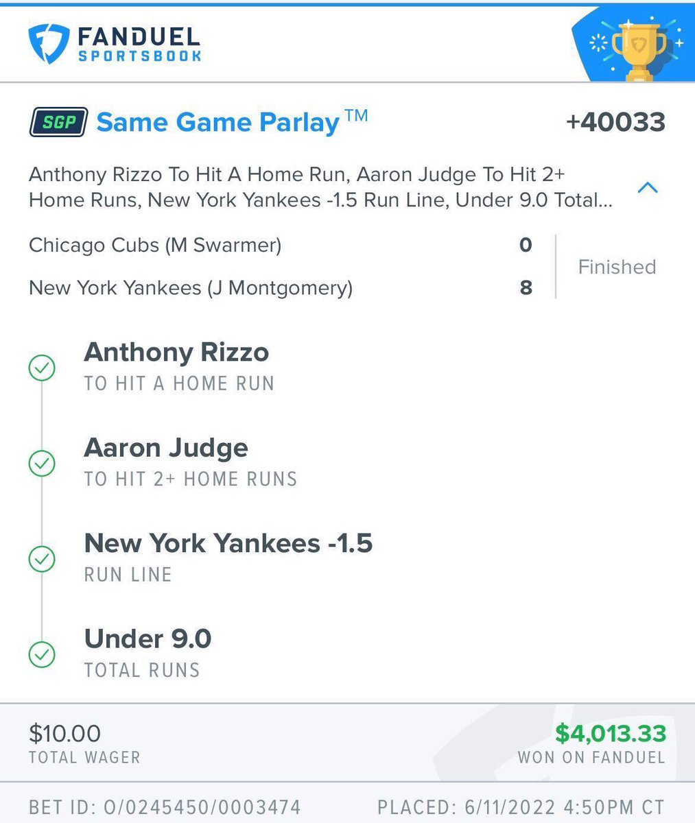 Fanduel Sportsbook On Twitter This Is Unreal A Customer In Indiana Placed This 8 Parlay Back On July 7th They Correctly Nailed The Champions In All 4 Major Sports And Cashed The